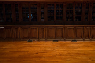El piso instalado fue nuestro modelo Atelier en Eucaliptus, y el gran diferencial fue el acabado con un tinte Bona color Sabbia para lograr una tonalidad en sincronía con los tonos más oscuros propios de los acabados del mobiliario original.