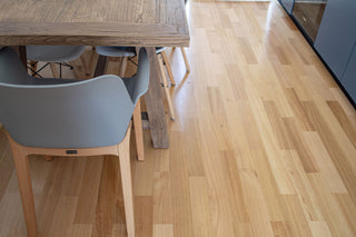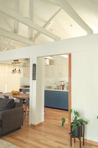 Proyecto de remodelación de una casa en Ñuñoa. La propuesta de este proyecto se caracteriza por la apertura de cielo e integración del living, comedor y cocina. Gracias a la amplitud y luz que se logró captar en este proyecto, nuestro diseño Atelier luce en toda la casa, incluyendo la cocina. La madera utilizada es Eucaliptus, tonalidad que le entrega calidez al espacio sin perder iluminación.