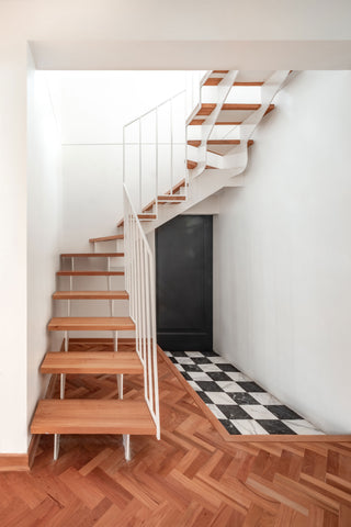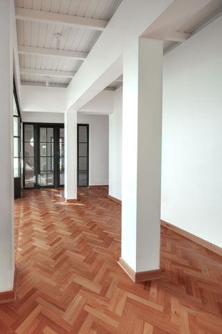 En este proyecto de remodelación el piso era gran protagonista. Fabricamos e instalamos nuestro piso diseño Herringbone en Raulí. En este caso, el patrón está formado por doble palmeta para darle más predominancia.