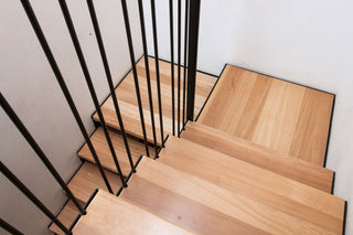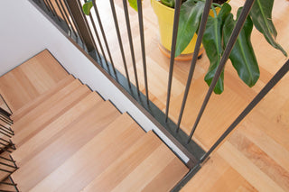A modo de continuación del recorrido, se incluyeron las gradas en Coigüe en una atractiva estructura de fierro para la escalera.